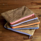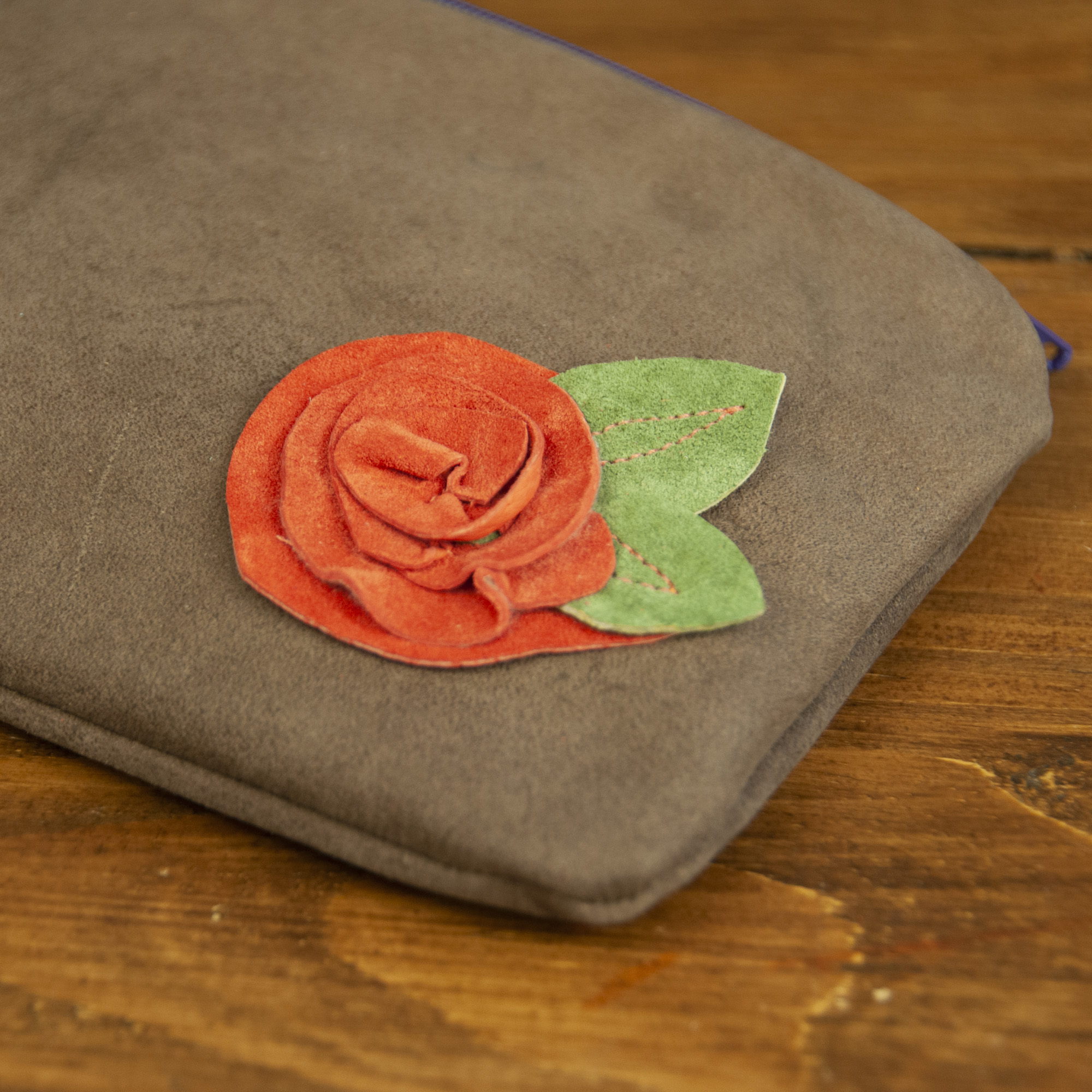 Our product line includes recycled leather zippered pouches, earrings, wine sleeve gift bags, napkin rings, tote bags, pillow covers, and holiday decor. We make everything ourselves from our little workspace in North Carolina. Our one-of-a-kind offerings are always changing, so keep checking back for new products.